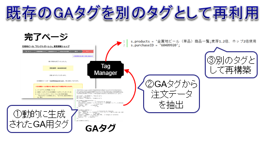 そこで今回は、すでに存在するGA用のECタグを読み取って、他のタグで注文データを再利用する方法について紹介します。